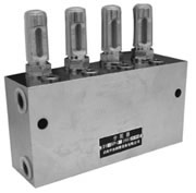 SDPQ-L系列单向出油分配器给油口都在底部,分配器活塞正反向动作均从同一个给油口排油,系统每工作一次,各给油口均排油一次。