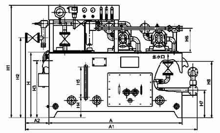注:1、A 为带压力罐的稀油润滑装置,呈正方形布置。