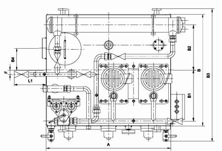 ≥250L/min稀油站,采用蒸汽加热油箱中的润滑油,仪表盘尚多一检测冷却器进出水管压差的仪表,其主要部件均另外装于基础上;而≤125L/min稀油站的全部部件都装在油箱上,为整体式结构。 |